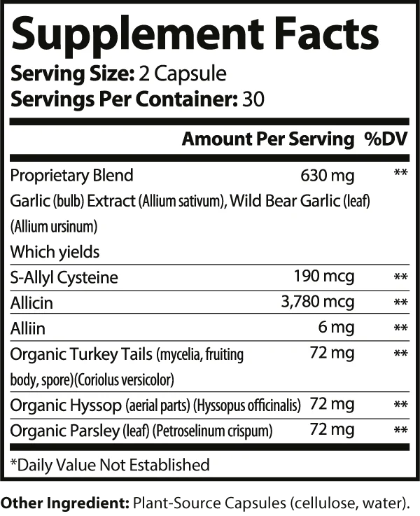 Through a specialized process, our formula ensures the preservation of allicin's potency. Additionally, we incorporate European wild garlic, Bear Garlic, renowned for its historical use and distinct effectiveness.