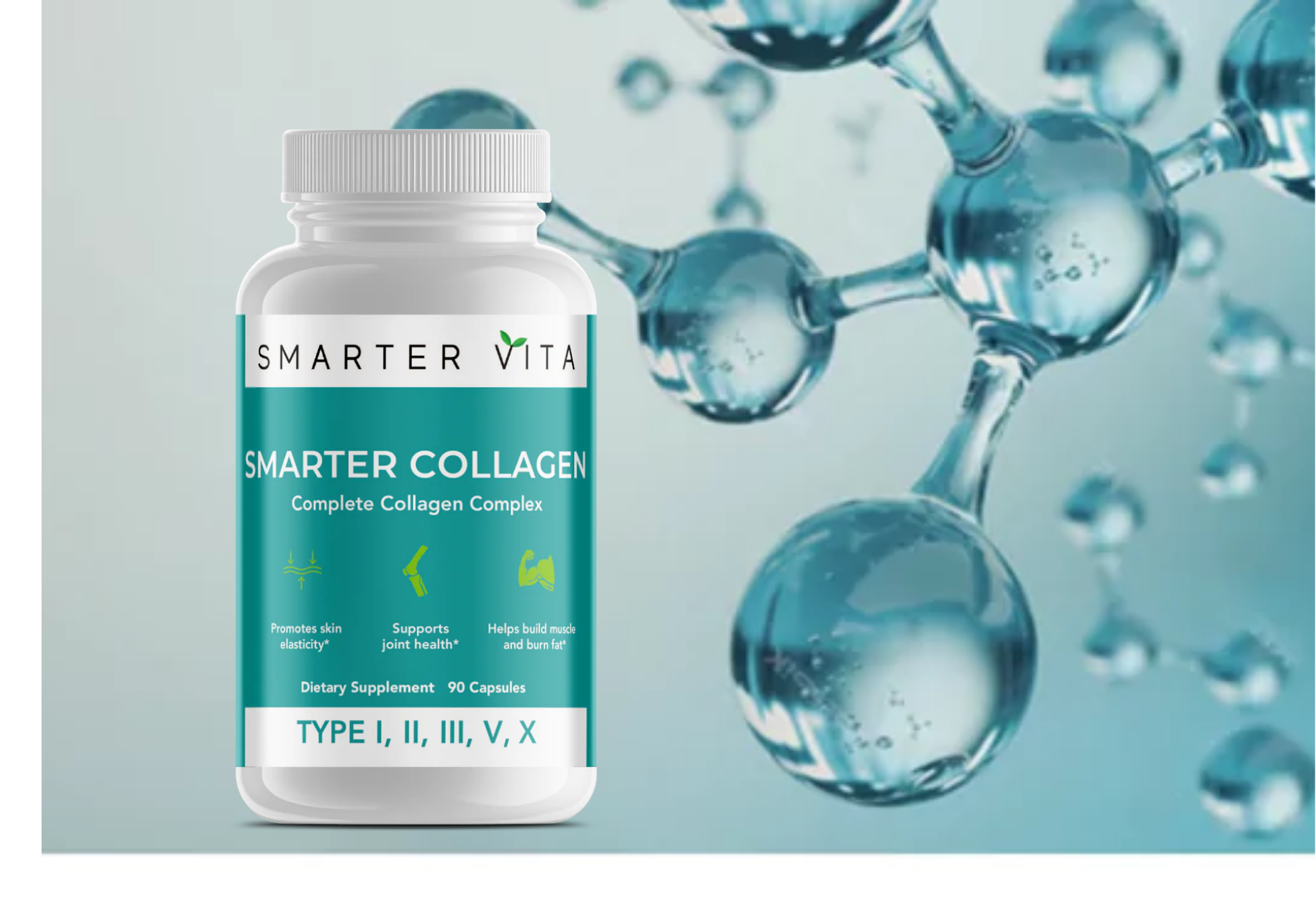 Our five-type collagen blend (I, II, III, V, X) is designed to provide total-body support, targeting everything from skin elasticity and hydration to joint flexibility and muscle recovery. Unlike generic formulas, Smarter Collagen is specifically engineered for comprehensive benefits.