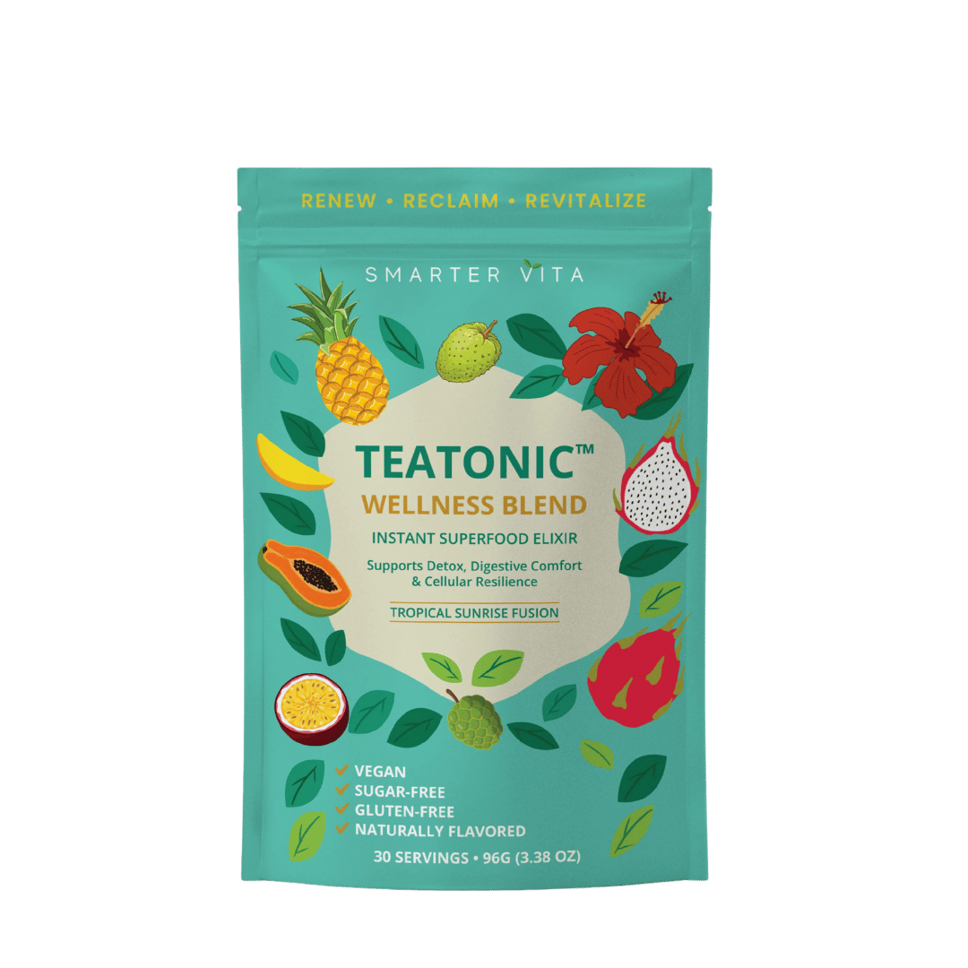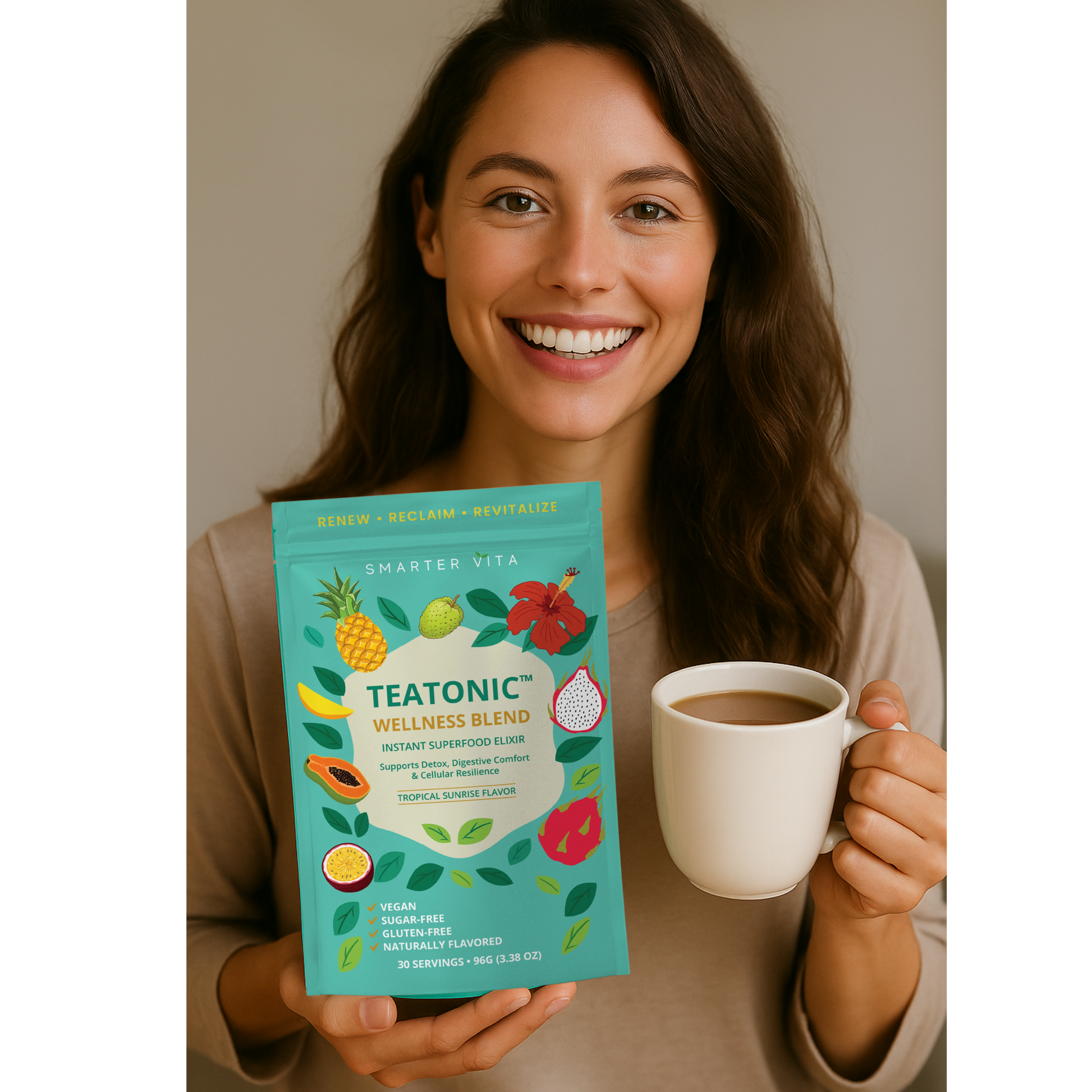 TEATONIC™ is a sophisticated daily ritual crafted to rebalance the body from within. Blending tropical fruits, revered botanicals, and cellular-supporting actives, this instant elixir helps restore harmony to digestion, vitality, and glow — with zero steep time, bitterness, or crash.